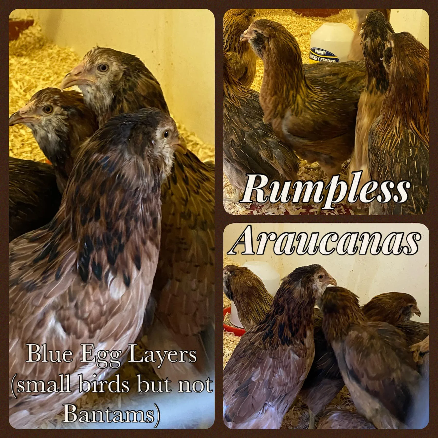 We now also supply a variety of Bantam hens in mixed colours (subject to availability) and Rumpless Araucana Pure Breed Hens which lay an olive/green egg, as seen below. Please contact directly for prices and any enquiries!